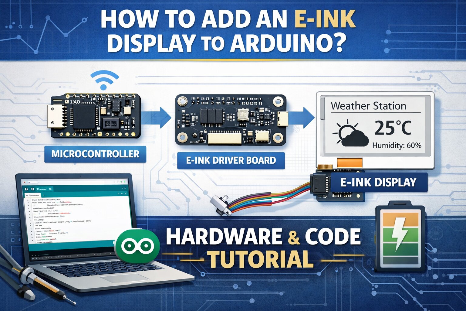 E-ink-näytöt ovat suosittu valinta vähävirtaisille elektroniikkalaitteille. Niiden kyky säilyttää kuvaa. Tämä artikkeli kertoo, kuinka lisätä E-ink-näyttö Arduinoon.
